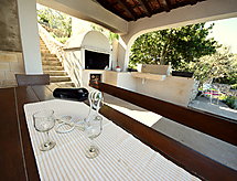 5-Zimmer-Haus 90 m2 auf 2 Stockwerken, Nordlage. 1 Zimmer mit 2 Betten (90 cm, Länge 200 cm). 1 Zimmer mit 2 Betten (120 cm, Länge 200 cm). Esszimmer. Ausgang zur Terrasse. Küche (4 Kochplatten). Dusche/WC. Obergeschoss: (Aussentreppe) Wohnzimmer mit 1 Diwanbett (120 cm, Länge 190 cm). Ausgang zur Terrasse. 1 Zimmer mit 1 franz. Bett (140 cm, Länge 200 cm). 1 Zimmer mit 3 Betten (90 cm, Länge 200 cm). Dusche/WC. Terrasse 7 m2 teilweise überdacht, Terrasse 5 m2. Terrassenmöbel, Liegestühle (2). Herrliche Sicht auf das Meer. Zur Verfügung: Babybett. 1 Haustier/Hund erlaubt. Energieversorgung durch Solaranlage. Strom über Sonnenkollektor und somit wetterabhängig. Nur eingeschränkte Nutzung von Elektrogeräten (Handys, Laptops, etc.) möglich. Eine Dusche ist präsent und die tägliche Reinigung unter der Brause braucht nicht viel Zeit, so bleibt mehr für den Urlaub. Mit Aussicht aufs Meer.- Ausstattung