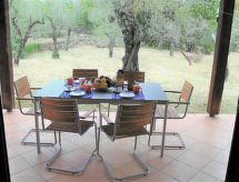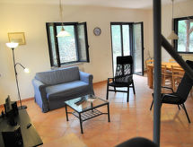 4-Zimmer-Haus 120 m2 auf 2 Stockwerken. Komfortabel und modern eingerichtet: grosses Wohn-/Esszimmer mit Küchenblock und Sat-TV (Flachbildschirm). Ausgang zum Garten, zur Loggia. 1 Doppelzimmer. Ausgang zum Garten. Kochnische (4 Kochplatten, Backofen, Tiefkühler). Dusche/Bidet/WC. G-Heizung. Obergeschoss: (geländerlose Treppe) 1 Doppelzimmer. Ausgang zum Balkon. 1 Zimmer mit 2 Betten. Ausgang zum Balkon. Dusche/Bidet/WC. Zur Verfügung: Waschmaschine, Bügeleisen, Haartrockner. Internet (Wireless LAN). Es hat ein Balkon.- Ausstattung