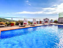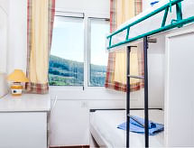 "Mirador", 5-Zimmer-Haus auf 2 Stockwerken. Hell, komfortabel eingerichtet: Wohn-/Esszimmer. 1 Zimmer mit 1 Bett (150 cm, Länge 190 cm). 1 Zimmer mit 1 x 2 Etagenbetten (90 cm, Länge 180 cm). 1 Zimmer mit 2 Betten (90 cm, Länge 190 cm). Küche (Backofen, Geschirrspüler, 4 Glaskeramikherd Platten, Toaster, Wasserkocher, Mikrowelle, elektrische Kaffeemaschine). Bad/WC, Dusche/WC. Keine Heizmöglichkeit. Obergeschoss: 1 Zimmer mit 1 franz. Bett (135 cm, Länge 190 cm). Grosse Terrasse, grosser Gartensitzplatz. Gartengrill, Liegestühle, Loggia. Sehr schöne Panoramasicht auf das Meer, die Berge, die Landschaft und die Ortschaft. Zur Verfügung: Waschmaschine. Internet (Wireless LAN, gratis). Bitte beachten: Nichtraucher-Haus. TV nur ES. HUTG-022570 Bietet wunderschöne Aussicht aufs Meer. Es hat ein Pool. Das Haus ist auch mit einem privaten Pool ausgestattet. Das Haus ist auch mit einem drahtlosen lokalen Netzwerk (WLAN) ausgestattet.- Charakteristik des Mietobjekts