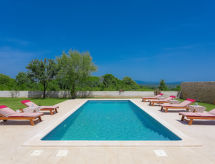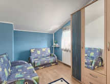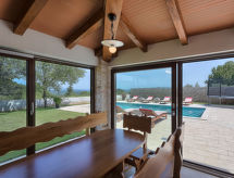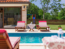 Schönes Einfamilienhaus "Mirjana", auf 2 Stockwerken. Im Weiler Frkeči, 2 km vom Zentrum von Barban, 20 km vom Zentrum von Rabac, ruhige, sonnige Lage, 10 km vom Meer. Zur Alleinbenutzung: Grundstück 1'500 m2 (eingezäunt), schöner Garten mit Rasen und Pflanzen, Schwimmbad eckig (10 x 4 m, 150 cm tief, saisonale Verfügbarkeit: 27.Apr. - 28.Sep.) mit Innentreppe. Aussendusche, Poolhaus mit Kühlschrank und Kochherd, Terrasse (30 m2), Gartenmöbel, Grill, Kinderspielplatz (Rutschbahn, Schaukel). Im Hause: Internetzugang, Sauna, Trampolin, Waschmaschine. Parkplatz (für 3 Autos) beim Haus auf dem Grundstück. Einkaufsgeschäft 2 km, Supermarkt 12 km, Restaurant 2 km, Kieselstrand 12 km, Felsstrand 10 km. Reitstall 9 km, Wanderwege ab Haus 500 m, Radweg 550 m. Nahe gelegene Sehenswürdigkeiten: adrenalin park 8 km.Interior