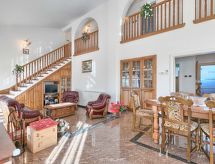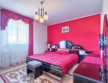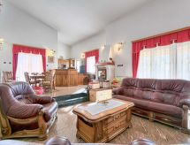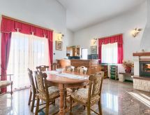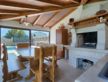 6-Zimmer-Haus 190 m2 auf 2 Stockwerken. Gemütlich eingerichtet: Wohn-/Esszimmer 50 m2 mit offenem Kamin und Sat-TV (Flachbildschirm), Klimaanlage. Ausgang zur Terrasse. 1 Zimmer mit 2 Betten (90 cm, Länge 200 cm), Klimaanlage. 1 Zimmer mit 1 Doppelbett (2 x 90 cm, Länge 200 cm), Klimaanlage. Offene Küche (4 Kochplatten, Backofen, Geschirrspüler, Mikrowelle, Tiefkühler, elektrische Kaffeemaschine). Bad/Bidet/WC, Dusche/WC. Obergeschoss: 2 Zimmer, jedes Zimmer mit 1 franz. Bett (180 cm, Länge 200 cm), Klimaanlage. 1 Zimmer mit 2 Betten (100 cm, Länge 180 cm), Klimaanlage. Bad/Bidet/WC. Terrasse 15 m2, Terrasse 10 m2, überdacht. Terrassenmöbel, Liegestühle. Sicht auf das Schwimmbad und den Garten. Zur Verfügung: Safe, Kinderhochstuhl, Babybett, Haartrockner. Internet (Wireless LAN, gratis). Terrasse 5 m2. Das Grundstück ist komplett eingezäunt. Ein Ort für Erholungsurlaube zum Sonnenbaden und Lesen im Garten. Das Haus ist auch mit einer Feuerstelle ausgestattet. Es hat eine Sauna. Das Haus ist auch mit einem privaten Pool ausgestattet. Es hat ein drahtloses lokales Netzwerk (WLAN).- Charakteristik des Mietobjekts