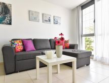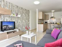 5-Zimmer-Wohnung "arinaga 1a", für 5 Personen, 80 m2 im 1. Stock, komfortabel und modern eingerichtet. Wohn-/Esszimmer mit Sat-TV. Rauchen nicht erlaubt. Internet (Wireless LAN [WLAN]). Schlafzimmer mit 1 Doppelbett. Schlafzimmer mit 2 Normalbetten. Schlafzimmer mit 1 Normalbett. Offene Küche mit Mikrowelle, Esstisch, Kühlschrank und Tiefkühler. Dusche und Dusche/WC. Weitere Ausstattung: Kinderhochstuhl, Haartrockner, Bügeleisen. VV-35/1/1118 Objekt mit Aufzug. Es hat ein überdachter Parkplatz. Es gibt ein Internetanschluss.- Charakteristik des Mietobjekts