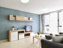 4-Zimmer-Wohnung "arinaga 2b", für 5 Personen, 80 m2 im 1. Stock, komfortabel und modern eingerichtet. Wohn-/Esszimmer mit Sat-TV. Rauchen nicht erlaubt. Internet (Wireless LAN [WLAN]). Schlafzimmer mit 1 Doppelbett. Schlafzimmer mit 2 Normalbetten. Schlafzimmer mit 1 Normalbett. Offene Küche mit Mikrowelle, Esstisch, Kühlschrank und Tiefkühler. Dusche/WC. Weitere Ausstattung: Kinderhochstuhl, Haartrockner, Bügeleisen. VV-35/1/1120 Objekt mit Aufzug. Ein überdachter Parkplatz ist verfügbar. Dank der Waschmaschine die Sie vorfinden, sind weniger Kleider zum mitschleppen. Ein Mikrowellenofen steht zur Verfügung.- Charakteristik des Mietobjekts