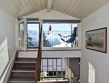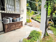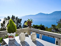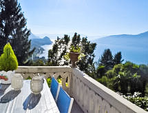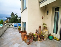 5-Zimmer-Villa 150 m2 auf 3 Stockwerken. Komfortabel und gemütlich eingerichtet: Eingang. Wohnzimmer mit Sat-TV. Ausgang zur Terrasse. Küche (4 Kochplatten, Backofen, Geschirrspüler, Tiefkühler, elektrische Kaffeemaschine) mit Esstisch. Ausgang zur Terrasse. Dusche/Bidet/WC. Obergeschoss: 2 Doppelzimmer. Ausgang zum Balkon. Gepäckraum. Erker. Dusche/Bidet/WC. 2. Obergeschoss: 1 abgeschrägtes Zimmer mit 2 Betten. G-Heizung (extra). Heizung nur verfügbar von 15.10. bis 15.04. 2 kleine Balkone, Terrasse 20 m2. Terrassenmöbel, Liegestühle (2). Herrliche Sicht auf den See und die Berge. Zur Verfügung: Haartrockner. Internet (Wireless LAN, gratis). Parkplatz (2 Autos) beim Haus. Bitte beachten: Parkplatz nur für kleine Wagen. 1 Haustier/Hund erlaubt. CIR:012020-CNI-00004 Frisch geduscht und duftend kann man entspannt zum Ferienprogramm übergehen, denn eine Dusche ist vorhanden. Das Haus ist auch mit einer Veranda ausgestattet. Ein Babybett ist vorhanden.- Ausstattung