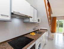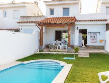 Urb El Casalot 3 km von Miami: Gemütliches Reihenhaus "Montalt I", auf 2 Stockwerken. Sonnige Lage, 3.8 km vom Meer, 3.8 km vom Strand. Zur Alleinbenutzung: Garten 200 m2, Schwimmbad eckig (6 x 3 m, 80 - 190 cm tief, saisonale Verfügbarkeit: 01.Jun. - 30.Sep.). Terrasse (10 m2), Gartenmöbel, Grill, Poolpflege durch den Besitzer/Gärtner Parkplatz (beschränkte Anzahl). Supermarkt 3 km, Bar 500 m, Bahnstation "Hospitalet" 6 km, Sandstrand 3 km. Golfplatz 2 km. Nahe gelegene Sehenswürdigkeiten: Parque Portaventura 28 km, parque acuático Aquopolis 31 km, parque Natural del Delta del Ebro 53 km, Tarragona 37 km, Reus 30 km, Barcelona 132 km. Bitte beachten: Fahrzeug empfohlen. Jugendgruppen nur auf Anfrage. Das perfekte Ziel für einen Golfurlaub. Costa Dorada bietet beste Bedingungen für den Golfsport. Auf Plätzen, wo Greenkeeper die satten Grüns und die tadellosen Fairways instandhalten. Insgesamt stehen in der Region abwechslungsreiche Reitwege zur Auswahl Ideal für gelungene Reiterferien. Für maximalen Ferien-Spass hat der Freizeitpark seine Pforten geöffnet und lädt zu spannenden Abenteuern und jeder Menge Action ein.Interior