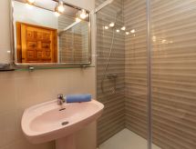 4-Zimmer-Reihenhaus 65 m2 auf 2 Stockwerken. Einfach eingerichtet: Wohn-/Esszimmer 16 m2 mit Esstisch, Sat-TV und Digital-TV. Ausgang zum Garten. 1 Zimmer 12 m2 mit 1 franz. Bett (135 cm), Bad/Bidet/WC. Ausgang zum Gartensitzplatz, zum Schwimmbad. Kochnische (Backofen, 4 Glaskeramikherd Platten, Toaster, Wasserkocher, Mikrowelle, elektrische Kaffeemaschine). Keine Heizmöglichkeit. Obergeschoss: 1 Zimmer mit 1 Doppeldiwanbett (2 x 80 cm). Ausgang zur Terrasse. 1 Zimmer 10 m2 mit 2 Betten (90 cm). Ausgang zur Terrasse. Dusche/WC. Terrasse 6 m2, Terrasse 10 m2. Terrassenmöbel, Gartengrill. Zur Verfügung: Waschmaschine, Bügeleisen, Haartrockner. Internet (Wireless LAN, gratis). Parkplatz (eingezäunt, 2 Autos), Garage. Bitte beachten: Maximal 1 Haustier/Hund erlaubt. TV nur ES, DE, FR. HUTT010133 Haustiere sind erlaubt. Somit können Hund und Frauchen beziehungsweise Herrchen gemeinsam die schönste Zeit im Jahr verbringen. Geeignet zum Grillen. Es hat ein privater Pool.- Charakteristik des Mietobjekts