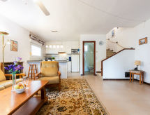 "Casa Stefi", 3-Zimmer-Doppelhaushälfte 100 m2 auf 2 Stockwerken. Wohn-/Esszimmer mit offenem Kamin, Esstisch und Sat-TV. Ausgang zum Balkon. Offene Küche (Backofen, Geschirrspüler, 4 Flammen, Toaster, Mikrowelle, Tiefkühler, elektrische Kaffeemaschine). Obergeschoss: 1 Zimmer mit 2 Betten. Ausgang zum Balkon. 1 Zimmer mit 1 Diwanbett und 1 Doppelbett. Ausgang zum Balkon. Dusche/WC, sep. WC. G-Heizung. 2 Balkone, kleiner Garten. Balkonmöbel, Liegestühle (2). Zur Verfügung: Waschmaschine, Babybett. Internet (Wireless LAN, gratis). Bitte beachten: Nichtraucher-Unterkunft. AT-0200674-CS Ist ein regelmäßiges Duschritual fest im Tagesablauf verankert? Das schaffen wir, denn eine Dusche ist vorhanden. Es gibt eine Feuerstelle. Ein überdachter Parkplatz ist verfügbar. Was wäre eine moderne Küche ohne Mikrowelle? Diejenige welche steht selbstverständlich zur Verfügung.- Ausstattung
