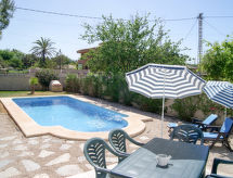 Haus "Montenegro". Im Ortsteil Playa Deveses, 14 km vom Zentrum von Denia, 90 km vom Zentrum von Valencia, 93 km vom Zentrum von Alicante, in einem Wohnquartier, 150 m vom Meer. Zur Alleinbenutzung: Grundstück 1'000 m2 (eingezäunt) mit Rasen und Bäumen, Schwimmbad (8 x 4 m, 120 - 200 cm tief, saisonale Verfügbarkeit: 01.Jan. - 31.Dez.). Parkplatz auf dem Grundstück. Supermarkt 3.5 km, Restaurant 300 m, Sandstrand "Playa Deveses" 150 m.Interior