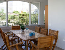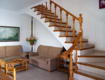 "Montenegro (DEN419)", 7-Zimmer-Haus 120 m2 auf 2 Stockwerken. Zweckmässig und schön eingerichtet: Wohn-/Esszimmer mit Wintergarten mit Esstisch und Sat-TV. Ausgang zur Terrasse. 2 Zimmer, jedes Zimmer mit 1 franz. Bett (135 cm). Ausgang zur Terrasse. 1 Zimmer mit 2 Betten. Küche (Backofen, 4 Glaskeramikherd Platten, Toaster, Wasserkocher, Mikrowelle, Tiefkühler, elektrische Kaffeemaschine). Bad/WC. Keine Heizmöglichkeit. Obergeschoss: Wohnzimmer mit offenem Kamin (nur Deko), Sat-TV. Ausgang zum Balkon. 1 Zimmer mit 1 franz. Bett (135 cm). Dusche/WC. Kleiner Balkon, Terrasse. Terrassenmöbel, Gartengrill, Liegestühle (8). Zur Verfügung: Waschmaschine, Kinderhochstuhl, Babybett. Maximal 1 Haustier/Hund erlaubt. AT441405A Das Grundstück ist komplett eingezäunt.- Charakteristik des Mietobjekts