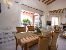 Monte Pego: Gemütliche, sehr komfortable Villa "Moreana". Ruhige Lage auf einem Hügel, im Villenviertel, verkehrsberuhigte Zone, 7 km vom Meer. Zur Alleinbenutzung: Naturgarten 600 m2, Schwimmbad (4 x 8 m, 90 - 200 cm tief, saisonale Verfügbarkeit: 01.Jan. - 31.Dez.). Terrasse (25 m2), Gartenmöbel, Grillhaus, Parkplatz (für 2 Autos). Bitte beachten: Fahrzeug empfohlen. Der Besitzer akzeptiert keine Jugendgruppen. Surfen oder nicht Surfen ist hier keine Frage. Man muss es einfach versucht haben. Vor Ort bietet sich die Gelegenheit dazu.Interior