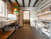 "'t Rak", 13-Zimmer-Haus 320 m2 auf 2 Stockwerken. Komfortabel eingerichtet: Eingang. Wohnzimmer mit Esstisch und Flachbildschirm. Ausgang zur Terrasse. Esszimmer mit Esstisch. Erker. Grosse Küche (8 Kochplatten, Backofen, Geschirrspüler, Wasserkocher, Tiefkühler, elektrische Kaffeemaschine). 2 sep. WC's. Obergeschoss: 11 Zimmer, jedes Zimmer mit 2 x 2 Etagenbetten. 1 Doppelzimmer mit 2 Betten. 5 Duschen, 2 sep. WC's. Heizung. Grosser Garten. Terrassenmöbel. Sicht auf die Landschaft. Zur Verfügung: Internet (Wireless LAN, gratis). Bitte beachten: Nichtraucher-Haus. 2 Haustiere/Hunde erlaubt. Rauchmelder. Auf Anfrage ist es möglich, einen Aufenthalt von Montag bis Montag zu buchen. Morgens schnell unter die verfügbare Dusche hüpfen, das regt Körper, Geist und Seele an. Die Urlaubsunterkunft verfügt über eine eigene Rezeption.- Ausstattung