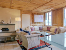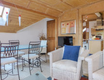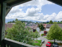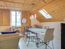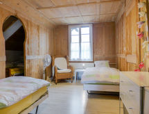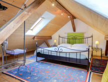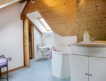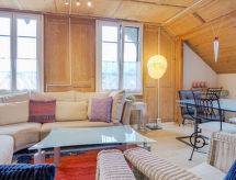 "Navah", 5-Zimmer-Wohnung 60 m2 auf 2 Stockwerken, im Dachgeschoss. Geräumig und hell, teilweise abgeschrägt, sehr komfortabel und gemütlich eingerichtet: 3. Obergeschoss: abgeschrägtes Wohn-/Esszimmer mit Esstisch, Kabel-TV, CD und DVD. 2 Zimmer, jedes Zimmer mit 2 Betten (90 cm, Länge 200 cm). 1 abgeschrägtes kleines Zimmer mit 1 Bett (90 cm, Länge 200 cm). Offene Küche (Backofen, Geschirrspüler, 4 Glaskeramikherd Platten, Toaster, Wasserkocher, Mikrowelle, Tiefkühler, elektrische Kaffeemaschine, Kapseln für die Kaffeemaschine (Nespresso) extra, Racletteofen, Fondue Set (Käse)) mit Bar. Ausgang zum Balkon. Dusche/WC, sep. WC. Dachgeschoss: (steile Treppe) 1 abgeschrägtes Doppelzimmer mit 1 Doppelbett (160 cm, Länge 200 cm). Bad/WC. Balkon, Ostlage Balkon, Westlage. Balkonmöbel. Sehr schöne Fernsicht auf die Landschaft und die Ortschaft. Zur Verfügung: Waschmaschine, Wäschetrockner. Internet (Wireless LAN, gratis). Parkplatz (überdacht, 2 Autos). Bitte beachten: Nichtraucher-Unterkunft. 1 Haustier/Hund erlaubt. Kein Fahrstuhl. Es gibt ein Parkplatz. Es gibt ein überdachter Parkplatz. Dank der Waschmaschine die Sie vorfinden, sind weniger Kleider zum mitschleppen. Ein DVD Spieler ist vorhanden.- Charakteristik des Mietobjekts