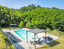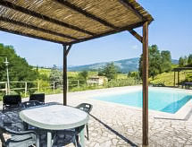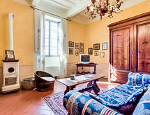 Alleinstehende Villa "Nicoletta", renoviert im Jahre 2005. 7 km vom Zentrum von Montecatini Terme, 35 km vom Zentrum von Lucca, 44 km vom Zentrum von Firenze, an einer Strasse. Zur Alleinbenutzung: Garten 5'500 m2 (eingezäunt), Schwimmbad (12 x 6 m, 90 - 140 cm tief, saisonale Verfügbarkeit: 20.Mai. - 30.Sep.). Aussendusche, Gartenmöbel, Grill. Heizung vor Ort zu zahlen, Heizung nur verfügbar von 01.11. bis 15.04.. Wohnungsreinigung 1 mal wöchentlich (inkl.). Haushaltshilfe täglich möglich (extra). Koch möglich (extra). Zufahrt bis zum Haus (100 m Naturweg). Parkplatz auf dem Grundstück. Einkaufsgeschäft 7 km, Lebensmittelgeschäft 1 km, Supermarkt 8 km, Restaurant 1 km, Bar 1 km, Bahnstation "Masotti" 2 km, Sandstrand "Versilia" 62 km, Thermalbad "Montecatini Terme" 7 km. Golfplatz 7 km, Tennis 3 km. Nahe gelegene Sehenswürdigkeiten: Pistoia 7 km, Uzzano 18 km, Montecarlo 22 km, Pescia 24 km, Collodi 26 km. Der Besitzer akzeptiert keine Jugendgruppen. Die Nachbarschaft ist sehr lärmempfindlich. Ruhe und gutes Benehmen wird erwartet. Das Schwimmbad liegt 150 m entfernt (10-19 Uhr geöffnet).Interior
