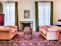 19-Zimmer-Villa 880 m2 auf 3 Stockwerken, im Erdgeschoss. Eingang. Esszimmer mit 1 Doppeldiwanbett und Sat-TV. Ausgang zum Gartensitzplatz. Wohnzimmer mit sep. WC. 1 Doppelzimmer. Wohnküche (5 Kochplatten, Backofen, Geschirrspüler, Toaster, Wasserkocher, Tiefkühler) mit Esstisch. Dusche/Bidet/WC. Obergeschoss: Salon mit offenem Kamin. 1 Doppelzimmer. Salon. Esszimmer mit offenem Kamin. Offenes Wohnzimmer. Offener Salon. Ausgang zum Garten. Offenes Wohnzimmer. Sep. WC. 2. Obergeschoss: Wohnzimmer. Salon. 1 Doppelzimmer mit Dusche/Bidet/WC. Kleiner Salon mit Dusche/Bidet/WC. 1 Doppelzimmer. 1 Zimmer mit 2 Betten und Dusche/Bidet/WC. 1 Doppelzimmer mit Dusche/Bidet/WC. 1 Doppelzimmer mit Dusche/Bidet/WC. Heizung (extra). Zur Verfügung: Waschmaschine, Safe, Bügeleisen, Kinderhochstuhl, Babybett bis 2 Jahre. Internet (Wireless LAN, gratis). Geeignet für Familien. Lassen Sie sich kulinarisch verwöhnen vom hauseigenen Koch. Das Grundstück ist komplett eingezäunt. Geeignet für ein Barbecue. Es hat ein Parkplatz. Es hat ein privater Pool. Mit Reinigung. Das Haus ist auch mit einem Ofen ausgestattet.- Ausstattung