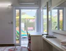 Mehrfamilienhaus "Nika". Im Ortsteil Punta, 2 km vom Zentrum von Umag, sonnige Lage, 300 m vom Meer, 300 m vom Strand. Zur Mitbenutzung: Grundstück 1'500 m2 (eingezäunt), gepflegter Garten, Schwimmbad (8 x 4 m, 135 cm tief, saisonale Verfügbarkeit: 25.Apr. - 19.Sep.). Aussendusche, Sprudelbad, Grill. Im Hause: Internetzugang, Fahrräder vorhanden (extra). Zur Verfügung: Boot (extra). Parkplatz. Einkaufsgeschäft, Restaurant 500 m, Kieselstrand 300 m. Tennis 200 m, Kinderspielplatz 20 m. Während des ATP-Turniers 21.07.2023. - 30.07.2023., ist erhöhter Lärm möglich. Für alle Nautiker, welche zum Segeln nach Umag kommen werden begeistert sein. Hier gibt es vielerlei Möglichkeiten die Ihnen ein umfangreiches Angebot zum Reiturlaub anbieten. Jagen Sie den Ball übers Netz bei einer Partie Tennis auf dem lokalen Tennisplatz.Interior