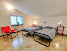 3-Zimmer-Wohnung 75 m2, im Dachgeschoss, Südostlage. Zweckmässig eingerichtet: Wohn-/Esszimmer mit Essecke und Sat-TV. Ausgang zum Balkon. 1 Zimmer mit 1 Doppelbett. 1 Zimmer mit 2 Betten. Küche (Backofen, 4 Flammen, Toaster, elektrische Kaffeemaschine) mit Esstisch. Bad/WC. G-Heizung. Balkon, Westlage. Balkonmöbel. Herrliche Panoramasicht auf die Berge und Pian di Spagna. Zur Verfügung: Kinderhochstuhl, Babybett bis 2 Jahre. Internet (Wireless LAN, gratis). Bitte beachten: Maximal 2 Haustiere/Hunde erlaubt. Eigener Eingang. CIR: 013216-CNI-00013 Eine Badewanne ist vorhanden. Nehmen Sie ihren Hund einfach mit anstatt ihn bei Verwandten oder in der Tier-Pension abzugeben. Denn Ihr Vierbeiner ist hier willkommen. Informieren Sie sich im über den vorhandenen TV Apparat. Ob lokale Neuigkeiten oder internationale Nachrichten, mit dem Fernsehen sind sie stehts gut informiert.- Ausstattung