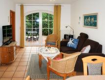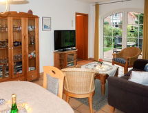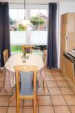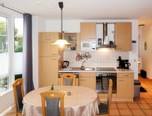 "Nordblick", 3-Zimmer-Wohnung 55 m2, im Erdgeschoss. Hell, schön und gemütlich eingerichtet: Wohn-/Esszimmer mit Kabel-TV (Flachbildschirm), Stereoanlage und DVD. Ausgang zur Terrasse. 1 Zimmer mit 1 Doppelbett (2 x 90 cm, Länge 200 cm). 1 Zimmer mit 2 Betten (90 cm, Länge 200 cm). Kochnische (Backofen, Geschirrspüler, 4 Glaskeramikherd Platten, Toaster, Wasserkocher, Mikrowelle, elektrische Kaffeemaschine). Dusche/WC. Terrasse. Terrassenmöbel, Abstellkammer. Zur Verfügung: Waschmaschine, Bügeleisen, Kinderhochstuhl (extra). Internet (Wireless LAN, gratis). Bitte beachten: Nichtraucher-Unterkunft. Maximal 2 Haustiere/Hunde erlaubt. Das Haus ist auch mit einem Parkplatz ausgestattet. Das Haus ist auch mit einem DVD Spieler ausgestattet.- Ausstattung