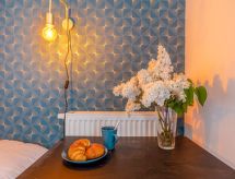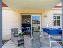 3-Zimmer-Wohnung 52 m2, im Erdgeschoss. Sehr komfortabel und modern eingerichtet: Eingang. Wohn-/Esszimmer mit 1 Doppeldiwanbett (1 x 140 cm, Länge 190 cm), TV (Flachbildschirm). Ausgang zum Garten, zur Terrasse. 1 Zimmer mit 1 Bett (140 cm, Länge 200 cm), TV (Flachbildschirm). 1 Zimmer mit 1 franz. Bett (1 x 140 cm, Länge 190 cm). Kochnische (Backofen, Geschirrspüler, 3 Induktionskochplatten, Wasserkocher, Mikrowelle, Tiefkühler, elektrische Kaffeemaschine). Dusche, sep. WC. G-Heizung. Terrasse überdacht, Rasen. Terrassenmöbel. Zur Verfügung: Waschmaschine. Internet (Wireless LAN, gratis). Parkplatz (überdacht). Bitte beachten: Nichtraucher-Unterkunft. Rauchmelder. Residenz. Unser Garten wartet auf Sie für einen Sprung in die Entspannung. Es hat ein Geschirrspüler. Es hat ein überdachter Parkplatz. Zur Verfügung steht ein Mikrowellengerät.- Charakteristik des Mietobjekts