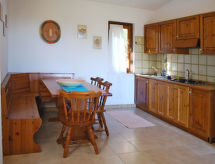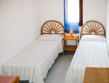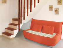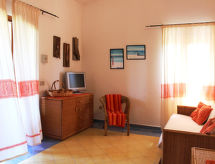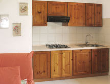 "Oasi - Trilo 6", 3-Zimmer-Wohnung 45 bis 60 m2. Zweckmässig eingerichtet: offenes Wohn-/Schlafzimmer mit 1 Doppeldiwanbett, Esstisch und TV. 1 Zimmer mit 1 Doppelbett. 1 Zimmer mit 2 Betten. Kleine, offene Küche (4 Flammen). Dusche/WC. Keine Heizmöglichkeit. Balkon oder Terrasse. Terrassenmöbel. Zur Verfügung: Babybett. Residenz. Es hat ein Balkon. Es gibt eine Terrasse.- Charakteristik des Mietobjekts