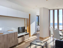 "Oceanic", 2-Zimmer-Wohnung 44 m2 im 2. Stock. Vollständig renoviert im Jahre 2017, komfortabel und gemütlich eingerichtet: Wohn-/Esszimmer mit Sat-TV, Internationale TV-Sender, Klimaanlage und Warmluftheizung. Ausgang zur Terrasse. 1 Doppelzimmer mit 1 Doppelbett (160 cm, Länge 200 cm). Ausgang zur Terrasse. Offene Küche (Backofen, Geschirrspüler, 4 Glaskeramikherd Platten, Mikrowelle, elektrische Kaffeemaschine, Kapseln für die Kaffeemaschine (Senseo) extra). Dusche/WC. Herrliche Sicht auf das Meer. Zur Verfügung: Waschmaschine, Bügeleisen, Haartrockner. Internet (Wireless LAN). Parkplatz Nr. Junio - Septiembe. VT-490449-A Objekt verfügt über einen Aufzug. Überrascht Sie mit einer herrlichen Aussicht aufs Meer. Das Haus ist auch mit einem Geschirrspüler ausgestattet. Ein Parkplatz ist verfügbar. Sollte das Wetter einmal nicht mitspielen, ist auch ein Fernseher vorhanden. Ein Mikrowellenofen steht zur Verfügung.- Ausstattung