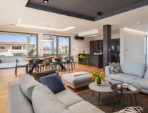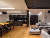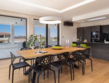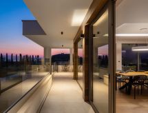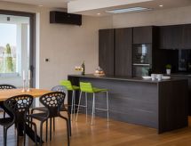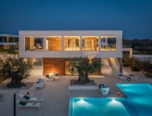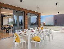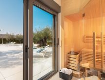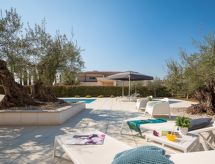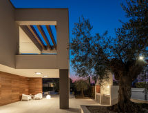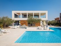 Vodnjan: Moderne Villa "Old Olive II", auf 3 Stockwerken. Im Weiler Salvela, 1 km vom Zentrum von Vodnjan, 7 km vom Zentrum von Fažana, 10 km vom Zentrum von Pula, sonnige Lage, 7 km vom Meer. Zur Alleinbenutzung: Grundstück 1'025 m2 (eingezäunt), Garten mit Pflanzen und Bäumen, Schwimmbad (65 m2, 30 - 140 cm tief, saisonale Verfügbarkeit: 01.Mar. - 01.Nov.) mit Innentreppe. Ungleichmässige Schwimmbadform, Aussendusche, Grill. Im Hause: Internetzugang, Sauna, Tischtennis, Billard, Tischfussball, Trampolin, Waschmaschine, Wäschetrockner. Parkplatz (für 3 Autos) beim Haus auf dem Grundstück. Einkaufsgeschäft 1 km, Supermarkt 1 km, Restaurant 1.5 km, Kieselstrand 7 km, Strandbad 7 km. Golfplatz 7 km, Tennis 2 km. Nahe gelegene Sehenswürdigkeiten: NP Brijuni 7 km, Amphitheater 11 km. Jugendgruppen nur auf Anfrage. Videoüberwachung der Immobilie. Spielen Sie Golf! Mit einer ausdrucksvollen Landschaftskulisse im Hintergrund wird Ihr Golfvergnügen gleich noch um eine Facette bereichert. Golfplätze sind vorhanden. Bespielbare Tennisplätze sind disponibel für sportliche Ferienwochen.Interior