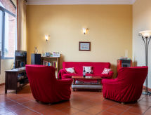 3-Zimmer-Wohnung 250 m2 im 1. Stock. Geräumig, sehr gemütlich eingerichtet: Wohn-/Esszimmer mit Esstisch, Sat-TV, Radio, CD und DVD. 2 Zimmer, jedes Zimmer mit 1 Doppelbett (180 cm). Küche (Backofen, Geschirrspüler, 5 Flammen, Toaster, Wasserkocher, Mikrowelle, Tiefkühler, elektrische Kaffeemaschine). 2 Duschen/WC. Heizung. Natursteinböden. Gartensitzplatz. Terrassenmöbel, Gartengrill (mobil), Liegestühle (2). Zur Verfügung: Kinderhochstuhl, Babybett. Internet (Wireless LAN, gratis). Bitte beachten: Nichtraucher-Haus. 1 Haustier/Hund erlaubt. CIR: 006050-AGR-00005 Bitte unterlassen Sie das Rauchen im Ferienobjekt. Es ist nicht erlaubt. Ein Feriengenuss für Mensch und Tier. Hierbei handelt es sich um eine Hunde- und katzenfreundliche Ferienunterkunft. Das Haus ist auch mit einem Internetanschluss ausgestattet. Es gibt ein DVD Spieler. Ein Mikrowellenofen steht zur Verfügung.- Ausstattung