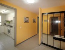 4-Zimmer-Wohnung im 2. Stock. Hell, zweckmässig und komfortabel eingerichtet: Wohn-/Esszimmer mit Sat-TV. 1 Zimmer mit 2 Betten (80 cm, Länge 190 cm). 1 Zimmer mit 2 Betten (90 cm, Länge 190 cm). 1 Zimmer mit 1 franz. Bett (1 x 135 cm, Länge 190 cm). Küche (4 Kochplatten, Backofen, Toaster, Mikrowelle). Bad/WC, Bad/Bidet/WC. Kleine Terrasse. Terrassenmöbel. Sicht auf den Garten und die Ortschaft. Zur Verfügung: Waschmaschine, Babybett bis 2 Jahre. Garage Nr. 35. 1 Haustier/Hund erlaubt. HUTG034591 Eine Badewanne ist verfügbar. Haustiere sind erlaubt. Lassen Sie Ihren Hund mitschnuppern an den schönsten Tagen im Jahr. Die Entspannung und das Lebensgefühl im Garten sind im Urlaub unverzichtbar. Informieren Sie sich im über den vorhandenen TV Apparat. Ob lokale Neuigkeiten oder internationale Nachrichten, mit dem Fernsehen sind sie stehts gut informiert. Ein Mikrowellenofen ist auch vorhanden.- Ausstattung