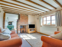 "Orchard Cottage", 5-Zimmer-Landhaus. Einfach und rustikal eingerichtet: Wohnzimmer mit TV. Küche (4 Kochplatten, Backofen) mit Esstisch. Obergeschoss: 2 kleine Zimmer, jedes Zimmer mit 1 Bett. 1 Doppelzimmer mit 1 Doppelbett. Dusche/WC. G-Heizung. Grosser Garten. Terrassenmöbel. Sicht auf die Landschaft. Zur Verfügung: Waschmaschine. Bitte beachten: für Kleinkinder nicht geeignet. TV nur EN.- Ausstattung