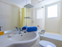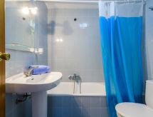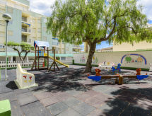 "Oromar", 4-Zimmer-Wohnung 108 m2 im 2. Stock. Objekt geeignet für 7 Erwachsene. Zweckmässig und komfortabel eingerichtet: Wohn-/Esszimmer mit 1 Doppeldiwanbett, Esstisch, Digital-TV, Flachbildschirm und Ventilator. Ausgang zur Terrasse. 1 Zimmer mit 3 Betten (90 cm, Länge 190 cm), Ventilator. 1 Doppelzimmer mit 2 Betten (90 cm, Länge 190 cm), Ventilator. 1 Doppelzimmer mit 2 Betten (90 cm, Länge 190 cm), Ventilator. Küche (Backofen, Geschirrspüler, 4 Glaskeramikherd Platten, Toaster, Mikrowelle, Tiefkühler, elektrische Kaffeemaschine). 2 Bäder/Bidet/WC. E-Heizung. Heizung nicht in allen Räumen. Terrasse 12 m2. Terrassenmöbel. Sicht auf das Meer. Zur Verfügung: Waschmaschine, Bügeleisen, Haartrockner. Parkplatz Nr. 526 (überdacht). Geeignet für Familien. 1 Haustier/Hund erlaubt. VT-41181-CS Badewanne im Haus. Gewährt spektakulärer Aussicht auf das Meer. Ein eindrucksvoller Kinderspielplatz befindet sich ebenfalls auf dem Anwesen. Ein überdachter Parkplatz ist vorhanden. Ein Kinderbecken ist verfügbar.- Ausstattung