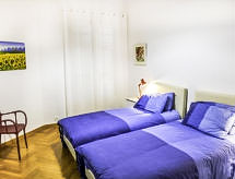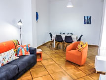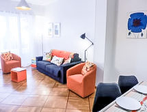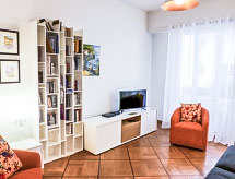3-Zimmer-Wohnung 80 m2 im 1. Stock. Komfortabel und schön eingerichtet: Wohn-/Esszimmer mit TV (Flachbildschirm), Klimaanlage. Ausgang zur Terrasse. 1 grosses Zimmer 13 m2 mit 2 Betten (90 cm, Länge 200 cm), Klimaanlage. Ausgang zum Balkon. 1 grosses Zimmer 17 m2 mit 1 franz. Bett (160 cm, Länge 200 cm), Klimaanlage. Ausgang zur Terrasse. Küche (Backofen, Geschirrspüler, 4 Induktionskochplatten, Toaster, Wasserkocher, Mikrowelle, Tiefkühler). Ausgang zur Terrasse. Dusche/WC, sep. WC. Fussbodenheizung. Parkettböden. Terrasse 13 m2. Terrassenmöbel. Sicht auf das Städtchen. Zur Verfügung: Waschmaschine, Bügeleisen, Haartrockner. Internet (Wireless LAN, gratis). Bitte beachten: Rauchmelder. 06088009697WF Das Ferienobjekt verfügt über einen Personenaufzug. Die Klimaanlage sorgt für eine gute Raumtemperierung. Denn der Wohlfühlfaktor spielt eine wichtige Rolle und ist uns wichtig. Das Haus ist auch mit einer Terrasse ausgestattet. Es gibt ein Geschirrspüler.- Ausstattung