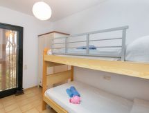 "Pals Haus", 4-Zimmer-Reihenhaus 85 m2. Wohn-/Esszimmer mit Digital-TV. Ausgang zum Gartensitzplatz. Küche (Backofen, Geschirrspüler, 4 Glaskeramikherd Platten, Toaster, Wasserkocher, Mikrowelle, Tiefkühler, elektrische Kaffeemaschine). Keine Heizmöglichkeit. Obergeschoss: 1 Zimmer mit 2 Ausziehbetten (2 Pers. 2 x 90 cm, Länge 190 cm). 1 Zimmer mit 1 x 2 Etagenbetten (90 cm, Länge 190 cm). Ausgang zum Balkon. 1 Zimmer mit 1 franz. Bett (150 cm, Länge 190 cm). Bad/Bidet/WC, Dusche/WC. Boiler (100 Liter). Gartensitzplatz. Terrassenmöbel. Zur Verfügung: Waschmaschine, Bügeleisen, Kinderhochstuhl, Babybett, Haartrockner. Internet (Wireless LAN, gratis). Parkplatz Nr. A 44. HUTG-061950 Eine Veranda ist vorhanden. Es gibt ein Babybett. Das Haus ist auch mit einem Pool ausgestattet. Sollte das Wetter einmal nicht mitspielen, ist auch ein Fernseher vorhanden.- Aktivitäten in der Nähe