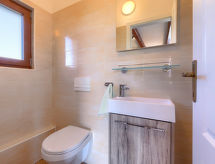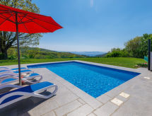 Schönes Einfamilienhaus "Panorama 1", auf 2 Stockwerken. Im Ortsteil Čekadi, 700 m vom Zentrum von Labin, ruhige, sonnige, erhöhte Lage, 5 km vom Meer, im Grünen. Zur Alleinbenutzung: Grundstück 800 m2 (eingezäunt), schöner Garten mit Rasen und Pflanzen, Schwimmbad eckig (8 x 4 m, 140 cm tief, saisonale Verfügbarkeit: 21.Mar. - 17.Okt.) mit Innentreppe. Aussendusche, Terrasse (15 m2), Grill. Im Hause: Internetzugang, Waschmaschine. Parkplatz beim Haus auf dem Grundstück. Einkaufsgeschäft 300 m, Supermarkt 1.2 km, Restaurant 1.2 km, Kieselstrand 5 km. Reitstall 3 km, Wanderwege ab Haus 100 m, Radweg 150 m. Insgesamt stehen in der Region abwechslungsreiche Reitwege zur Auswahl Ideal für gelungene Reiterferien.Interior