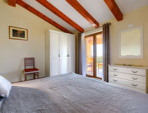 3-Zimmer-Haus 100 m2 auf 2 Stockwerken. Rustikal eingerichtet: Wohn-/Esszimmer mit Panoramafenster mit offenem Kamin und Sat-TV (Flachbildschirm). Ausgang zur Terrasse. Offene Küche (4 Kochplatten, Backofen, Geschirrspüler, Mikrowelle, Tiefkühler, elektrische Kaffeemaschine). Sep. WC. Obergeschoss: 1 Zimmer mit 1 franz. Bett (180 cm, Länge 200 cm), Dusche/WC und Klimaanlage. 1 Zimmer mit 1 franz. Bett (180 cm, Länge 200 cm), Dusche/WC und Klimaanlage. Ausgang zur Terrasse. 2 Terrassen 15 m2, überdacht. Terrassenmöbel, Liegestühle. Herrliche Panoramasicht auf das Meer und die Landschaft. Zur Verfügung: Safe, Haartrockner. Internet (Wireless LAN, gratis). 1 Haustier/Hund erlaubt. Mit eingezäuntem Grundstück. Ferienobjekt samt Garten zum Entspannen. Bietet wunderschöne Aussicht aufs Meer. Es hat eine Terrasse. Ein privater Pool ist vorhanden. Dank der Waschmaschine die Sie vorfinden, sind weniger Kleider zum mitschleppen.- Ausstattung