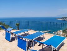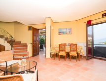 4-Zimmer-Villa 150 m2 auf 2 Stockwerken. Hell, teilweise renoviert im Jahre 2019, geschmackvoll und gemütlich eingerichtet: grosses Wohnzimmer mit offenem Kamin, Esstisch und Sat-TV (Flachbildschirm). Ausgang zum Garten, zur Terrasse, zum Gartensitzplatz. Küche (4 Kochplatten, Backofen, Geschirrspüler, Mikrowelle, Tiefkühler) mit Esstisch. Dusche/Bidet/WC. Heizung. Heizung nur verfügbar von 01.11. bis 31.03. Obergeschoss: 1 grosses Doppelzimmer mit Panoramafenster mit Ventilator. Ausgang zum Balkon. 1 Doppelzimmer mit Ventilator. 1 Zimmer mit 1 Bett, 1 Doppelwandschrankbett und Ventilator. Ausgang zur Terrasse. Bad/Bidet/WC. Grosse Terrasse. Terrassenmöbel, Gartengrill, Liegestühle. Herrliche Panoramasicht auf das Meer, die Landschaft und die Ortschaft. Zur Verfügung: Waschmaschine. Internet (Wireless LAN, gratis). Parkplatz (überdacht). Geeignet für Familien. Zur Verfügung: Mobile Klimaanlage. Bitte beachten: Zufahrt zum Parkplatz und zum Haus erfolgt auf 30 m steiler Strasse mit 2 engen Kurven, welche für grosse Autos nicht geeignet ist. Vom Parkplatz führen 15 Treppenstufen zum Haus. 15063044EXT0008 Mit Aussicht aufs Meer. Ein Geschirrspüler ist verfügbar. Es gibt ein Parkplatz. Ein überdachter Parkplatz ist vorhanden. Ein privater Pool ist vorhanden. Frische Bettwäsche verfügbar. Mit Reinigung. Ein Mikrowellenofen steht zur Verfügung. Es hat ein Ofen.- Aktivitäten in der Nähe