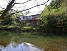 4-Zimmer-Landhaus. Teilweise abgeschrägt, zweckmässig eingerichtet: Wohn-/Esszimmer mit offenem Kamin und TV (Flachbildschirm), CD und DVD. Ausgang zum Balkon. 1 Zimmer mit 1 Doppelbett, Waschbecken und sep. WC. 1 Zimmer mit 1 Bett und 1 Doppelbett. Küche (4 Kochplatten, Backofen). Bad/Dusche/WC. Heizung. Kleiner Balkon, Gartensitzplatz, Garten. Wintergarten. Sicht auf den Fluss. Zur Verfügung: Waschmaschine. Internet (Wireless LAN, gratis). Bitte beachten: nicht geeignet für Kinder unter 8 Jahren. Nichtraucher-Haus. Es hat ein Balkon. Eine Veranda ist vorhanden. Es hat ein DVD Spieler.- Charakteristik des Mietobjekts