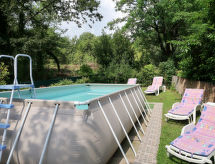 3-Zimmer-Doppelhaushälfte 64 m2 auf 2 Stockwerken. 1 Zimmer mit 2 Betten. Offene Küche (2 Kochplatten, Backofen, Geschirrspüler, 2 Flammen, Toaster, Wasserkocher, Mikrowelle, Tiefkühler, elektrische Kaffeemaschine) mit Esstisch, Sat-TV. Ausgang zur Terrasse. Dusche/WC. Obergeschoss: (Wendeltreppe) 2 abgeschrägte Zimmer, jedes Zimmer mit 1 Doppelbett und Klimaanlage. Dusche/WC. Terrasse überdacht. Terrassenmöbel, Liegestühle. Zur Verfügung: Internet (Wireless LAN, gratis). Bitte beachten: Nichtraucher-Haus. Maximal 2 Haustiere/Hunde erlaubt. Treten Sie ein und spüren die erfrischende Brise der Klimaanlage. Ein privater Pool ist verfügbar. Zur Verfügung steht ein Mikrowellengerät. Es hat ein Ofen.- Ausstattung