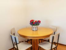"Paraiso", 3-Zimmer-Wohnung 75 m2, im Erdgeschoss. Zweckmässig eingerichtet: Wohn-/Esszimmer mit Digital-TV. Ausgang zur Terrasse. 1 Zimmer mit 1 franz. Bett (160 cm, Länge 190 cm). 1 Zimmer mit 2 Betten (90 cm, Länge 190 cm). Küche (Geschirrspüler, 4 Glaskeramikherd Platten, Toaster, Wasserkocher, Mikrowelle, Tiefkühler, elektrische Kaffeemaschine, Kombinationsmikrowelle). Dusche/WC, sep. WC. Keine Heizmöglichkeit. Terrassenmöbel, Gartengrill, Liegestühle (2). Herrliche Panoramasicht auf das Meer. Zur Verfügung: Waschmaschine, Bügeleisen, Kinderhochstuhl, Babybett, Haartrockner. Internet (Wireless LAN, gratis). Parkplatz Nr. 7. Bitte beachten: TV nur ES. HUTG-013125 Eine Terrasse ist verfügbar. Es hat ein drahtloses lokales Netzwerk (WLAN).- Ausstattung