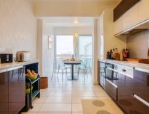 2-Zimmer-Wohnung 70 m2 im 4. Stock. Komfortabel und schön eingerichtet: Wohn-/Esszimmer mit 1 Doppeldiwanbett (140 cm, Länge 190 cm), TV (Flachbildschirm). Ausgang zum Balkon. 1 Zimmer mit 1 franz. Bett (140 cm, Länge 190 cm). Grosse Küche (Geschirrspüler, 2 Induktionskochplatten, Toaster, Wasserkocher, Tiefkühler, elektrische Kaffeemaschine, Kapseln für die Kaffeemaschine (Nespresso) extra, Kombinationsmikrowelle). Ausgang zum Balkon. Dusche, sep. WC. G-Heizung. Balkonmöbel. Fernsicht auf das Meer und das Städtchen. Zur Verfügung: Waschmaschine, Wäschetrockner, Bügeleisen, Haartrockner. Internet (Wireless LAN, gratis). Bitte beachten: Nichtraucher-Haus. Rauchmelder. 64122001844FD Residenz. Sie gelangen mit dem Aufzug zur Etage der Wohnung. Es gibt ein Balkon. Das Haus ist auch mit einem Internetanschluss ausgestattet.- Charakteristik des Mietobjekts