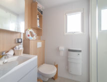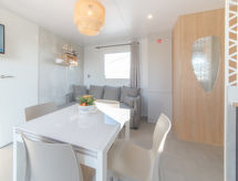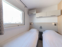4-Zimmer-Bungalow 42 m2. Zweckmässig und gemütlich eingerichtet: offenes Wohn-/Esszimmer mit Esstisch und Digital-TV. 1 Zimmer mit 1 Doppelbett (160 cm, Länge 200 cm), Dusche/WC. 2 Zimmer, jedes Zimmer mit 2 Betten (80 cm, Länge 200 cm). Offene Küche (Geschirrspüler, Gasherd, Toaster, Wasserkocher, Tiefkühler, elektrische Kaffeemaschine, Kombinationsmikrowelle). Dusche, sep. WC. E-Heizung. Terrasse 24 m2. Terrassenmöbel, Gartengrill. Zur Verfügung: Kinderhochstuhl, Babybett bis 2 Jahre, Haartrockner. Internet (Wireless LAN, gratis). Parkplatz (extra). Bitte beachten: Nichtraucher-Haus. Rauchmelder, Feuerlöscher. An der Rezeption erhalten Sie den Schlüssel Ihrer Ferienunterkunft sowie weitere hilfreiche Informationen. Das Haus ist auch mit einem drahtlosen lokalen Netzwerk (WLAN) ausgestattet.- Ausstattung