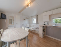 "Kerlinga 1008", 4-Zimmer-Chalet 50 m2. Komfortabel und gemütlich eingerichtet: offenes Wohn-/Esszimmer mit Esstisch, sep. WC, TV, Digital-TV und Internationale TV-Sender. Ausgang zum Garten. 2 Zimmer, jedes Zimmer mit 2 Betten (90 cm, Länge 200 cm). 1 Doppelzimmer mit 1 Doppelbett (140 cm, Länge 200 cm), Dusche/WC. Offene Küche (Gasherd, 4 Flammen, Toaster, Wasserkocher, Mikrowelle, Tiefkühler, elektrische Kaffeemaschine). Dusche. Garten 20 m2. Terrassenmöbel. Zur Verfügung: Haartrockner. Internet (Wireless LAN, gratis). Parkplatz (1 Auto). Bitte beachten: Nichtraucher-Haus. 1 kleines Haustier/Hund erlaubt. Rauchmelder, Feuerlöscher. An der Rezeption sind wir hilfsbereit für alle möglichen Fragestellungen rund um das Ferien Objekt. Informieren Sie sich im über den vorhandenen TV Apparat. Ob lokale Neuigkeiten oder internationale Nachrichten, mit dem Fernsehen sind sie stehts gut informiert.- Ausstattung