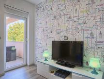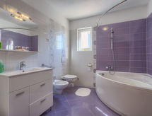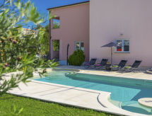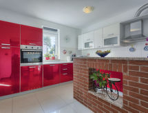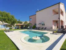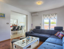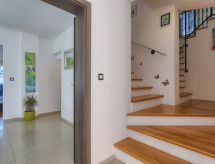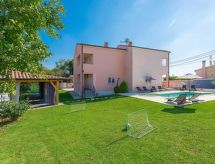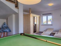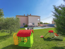 Einfamilienhaus "Paus", auf 2 Stockwerken. Im Weiler Orihi, 7 km vom Zentrum von Barban, ruhige, sonnige Lage, 15 km vom Meer. Zur Alleinbenutzung: Grundstück 1'000 m2 (eingezäunt), Garten mit Rasen und Pflanzen, Schwimmbad beheizt (32 m2, 140 cm tief, saisonale Verfügbarkeit: 27.Apr. - 26.Okt.) mit Innentreppe. Ungleichmässige Schwimmbadform, Aussendusche, Tischtennis, Terrasse (40 m2), Gartenmöbel, Grill, Kinderspielplatz (Rutschbahn, Schaukel). Im Hause: Internetzugang, Sauna, Billard, Trampolin, Waschmaschine. Parkplatz beim Haus auf dem Grundstück. Einkaufsgeschäft 50 m, Restaurant 250 m, Kieselstrand 15 km. Reitstall 15 km, Wanderwege ab Haus 100 m, Radweg 150 m. Nahe gelegene Sehenswürdigkeiten: Adrenalin park 15 km. Keine Vermietung an Jugendgruppen.Interior