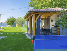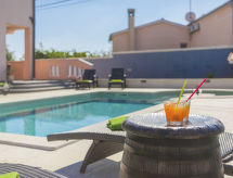 8-Zimmer-Haus 280 m2 auf 2 Stockwerken. Wohn-/Esszimmer mit Sat-TV (Flachbildschirm), Klimaanlage. Ausgang zur Terrasse. Billardzimmer 50 m2 mit Sat-TV (Flachbildschirm), Klimaanlage. Ausgang zum Garten, zum Schwimmbad. Offene Küche (4 Kochplatten, Backofen, Geschirrspüler, Mikrowelle, Tiefkühler, elektrische Kaffeemaschine). 2 Duschen/WC. Obergeschoss: Eingang mit Klimaanlage. 1 Zimmer mit 1 franz. Bett (180 cm, Länge 200 cm). 1 Zimmer mit 1 franz. Bett (180 cm, Länge 200 cm). Ausgang zur Terrasse. 1 Zimmer mit 1 Doppeldiwanbett (140 cm, Länge 200 cm), TV (Flachbildschirm). Ausgang zur Terrasse. Eingang mit Klimaanlage. 1 Zimmer mit 1 franz. Bett (160 cm, Länge 200 cm). 1 Zimmer mit 2 Betten (90 cm, Länge 200 cm). Ausgang zur Terrasse. 1 Zimmer mit 1 franz. Bett (180 cm, Länge 200 cm). Ausgang zur Terrasse. Bad/Bidet/WC, Dusche/WC. Terrasse 15 m2, überdacht, 2 Terrassen 8 m2. Terrassenmöbel, Gartengrill (mobil), Liegestühle. Sicht auf das Schwimmbad und den Garten. Zur Verfügung: Safe, Kinderhochstuhl, Babybett, Haartrockner. Internet (Wireless LAN, gratis). 1 Haustier/Hund erlaubt. Erdgeschoss: Waschmaschine im Zimmer mit externem und separatem Eingang. Sportgeräte und Sauna befinden sich im Billardzimmer. Auch ihr Hund ist hier ein gern gesehen Feriengast, schließlich gehört er zur Familie. Es hat eine Sauna. Ein Pool ist verfügbar. Das Haus ist auch mit einem privaten Pool ausgestattet. Es hat ein beheizter Pool. Das Haus ist auch mit einem Billardtisch ausgestattet.- Charakteristik des Mietobjekts