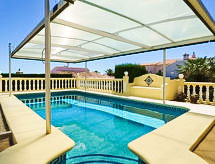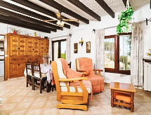 Einfamilienhaus "Pedro". Im Ortsteil Balcón al Mar, 6 km vom Meer. Zur Alleinbenutzung: Garten 1'200 m2 (eingezäunt) mit Pflanzen und Bäumen, Schwimmbad (4 x 8 m, saisonale Verfügbarkeit: 01.Jan. - 31.Dez.) mit Innentreppe. Aussendusche. Im Hause: Dachterrasse, Zentralheizung. Supermarkt 1.6 km, Restaurant 800 m, Sandstrand "Arenal" 12 km. Tennis 1.6 km.Interior