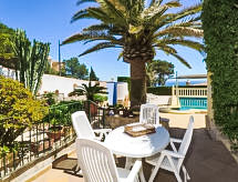 4-Zimmer-Haus 100 m2. Zweckmässig eingerichtet: Wohnzimmer mit Sat-TV (Flachbildschirm). Esszimmer mit Sat-TV (Flachbildschirm), Ventilator. 1 Zimmer mit 2 Betten, Dusche/WC, TV und Flachbildschirm. 1 Zimmer mit 2 Betten und Bad/Dusche/WC. Kleine Küche (Geschirrspüler, Mikrowelle, Tiefkühler, elektrische Kaffeemaschine). Terrassenmöbel, Liegestühle (4). Schöne Panoramasicht auf das Meer. Zur Verfügung: Waschmaschine. Internet (Wireless LAN, gratis). Parkplatz (eingezäunt, 2 Autos) beim Haus. 1 Haustier/Hund erlaubt. AT-440259-A Überdies werden sie verwöhnt mit einem freien Blick auf das Meer. Es gibt ein Parkplatz. Ein privater Pool ist verfügbar.- Charakteristik des Mietobjekts