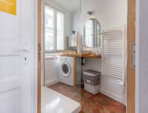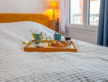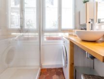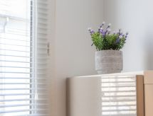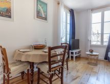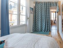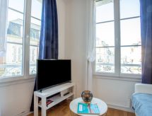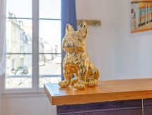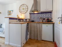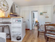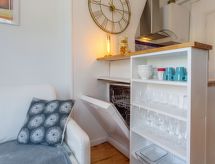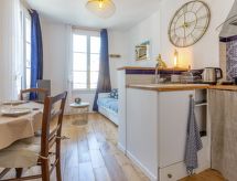 Trouville sur mer: Reihenhaus "Petite bulle", auf 2 Stockwerken. Zentrale, sonnige, erhöhte Lage, 900 m vom Meer, 850 m vom Strand. Lebensmittelgeschäft 300 m, Supermarkt 500 m, Restaurant 350 m, Bäckerei 400 m, Bahnstation "de Deauville Trouville" 550 m, Sandstrand "les planches de Trouville sur me" 900 m, Hallenbad 850 m, Thermalbad "Cures marine de Trouville sur me" 700 m. Segelschule 1.7 km, Tennis 950 m. Nahe gelegene Sehenswürdigkeiten: casino de Trouville sur Mer 650 m, hippodrome de deauville La Touques 2.8 km, Honfleur, village normand 16 km, Mémorial de Caen 54 km. Bitte beachten: Auto nicht empfehlenswert, kein Fahrstuhl vorhanden. Die Schlüsselübergabe findet bei der Agentur Interhome in Deauville statt. Jeden Tag 10 Minuten putten üben auf dem ansässigen Golfplatz verbessert Ihr Handicap. Seien Sie nicht besorgt, auf ein Pferd zu setzen, falls Sie dies noch niemals zuvorgetan haben. Reiten ist für Ross und Reiter ein komfortables Vergnügen.Interior