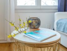 2-Zimmer-Wohnung 30 m2 im 1. Stock, Südwestlage. Hell, vollständig renoviert im Jahre 2020: Wohn-/Esszimmer mit 1 Diwanbett (120 cm, Länge 190 cm), TV (Flachbildschirm). 1 Zimmer mit 1 franz. Bett (1 x 140 cm, Länge 190 cm), sep. WC und Dusche. Kleine Kochnische (Backofen, Geschirrspüler, 2 Glaskeramikherd Platten, Toaster, Wasserkocher, Mikrowelle, elektrische Kaffeemaschine). Terrasse 20 m2. Terrassenmöbel. Sicht auf die Ortschaft. Zur Verfügung: Waschmaschine. Internet (Wireless LAN, gratis). Bitte beachten: Nichtraucher-Unterkunft. Rauchmelder. Unabhängiger sind Sie mit der eigens vorhandenen Waschmaschine. Es hat ein Ofen.- Ausstattung