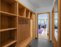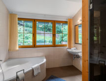 Bad Gastein: Sehr modernes Chalet "Pflaume", auf 2 Stockwerken. Im Ortsteil Badbruck, ruhige, sonnige Lage am Hang. Zur Alleinbenutzung: Garten 151 m2. Im Hause: Infrarotwärmekabine, Zentralheizung, Waschmaschine, Wäschetrockner. Einkaufszentrum 3 km, Restaurant 100 m, Bäckerei 250 m, Bushaltestelle 80 m, Thermalbad "Felsentherme" 3 km, Badesee 1 km. Golfplatz (18 Loch) 200 m, Reitstall 900 m, Radweg 100 m, Bergbahn 3 km, Skipisten 3 km, Langlaufloipe 100 m, Kinderspielplatz 500 m. Nahe gelegene Sehenswürdigkeiten: Gasteiner Heilstollen 7 km, Felsentherme Bad Gastein 3 km. Bekannte Skigebiete sind gut erreichbar: Ski Amadé Gastein 3 km. Wandergebiete: Nationalpark Hohe Tauern 7 km. Insgesamt stehen in der Region abwechslungsreiche Reitwege zur Auswahl Ideal für gelungene Reiterferien.Interior