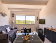 Residenz "Pietralunga". Im Weiler Pietralunga mit 20 Häusern, am Hang, 6 km vom Meer. In der Anlage: Klimaanlage. Zufahrt (Bergstrasse). Parkplatz. Lebensmittelgeschäft 6 km, Supermarkt 9 km, Einkaufszentrum 10 km, Restaurant 6 km, Bäckerei 4 km, Sandstrand "Santa Giulia" 6 km. Jacht-Hafen 10 km, Golfplatz 5 km, Reitstall 11 km. Nahe gelegene Sehenswürdigkeiten: Bonifacio 22 km, Figari 18 km, Porto Vechio 12 km, Iles Lavezzi. Bekannte Seen in der Umgebung sind gut erreichbar: Lac de l'Ospedale. Wandergebiete: Aiguille de Bavella. Bitte beachten: Fahrzeug empfohlen.Interior