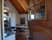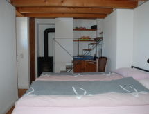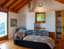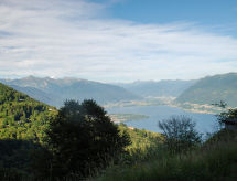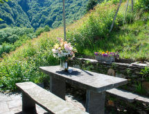 "Baita Pimpisnino", 2-Zimmer-Haus 35 m2 auf 2 Stockwerken. Objekt geeignet für 2 Erwachsene + 2 Kinder. Komfortabel und gemütlich eingerichtet: offenes Wohn-/Esszimmer mit 1 Diwanbett (90 cm, Länge 200 cm), Esstisch und Holzofen. Ausgang zum Balkon, zum Gartensitzplatz. Offene Küche im Eingang (Backofen, Gasherd, 4 Flammen, Fondue Set (Käse)). Unteres Geschoss: 1 Doppelzimmer mit 1 Bett (90 cm, Länge 200 cm), 1 Doppelbett (2 x 90 cm, Länge 200 cm), Schwedenofen. Ausgang zum Garten. Dusche/WC. Holzheizung. Kleiner Balkon, Südlage. Gartengrill, Liegestühle (1), Sitzplatz. Herrliche Panoramasicht auf den See, die Berge und die Landschaft. Zur Verfügung: Internet (Wireless LAN). Bitte beachten: Nichtraucher-Haus. Maximal 1 kleines Haustier/Hund erlaubt. Aus- und Beladen 60 m vom Haus möglich. Im Weiler Pimpisnino hat es fast keine Parkmöglichkeiten, 600m weiter die Strasse hoch gibt es Anzahl begrenzte Parkplätze, da beginnt das Wanderparadies! Es dürfen KEINE Elektrogeräte benutzt werden. Frisch geduscht und duftend kann man entspannt zum Ferienprogramm übergehen, denn eine Dusche ist vorhanden. Es hat eine Veranda. Eine Feuerstelle ist verfügbar.- Ausstattung