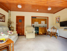 2-Zimmer-Bungalow. Geräumig und hell, komfortabel und geschmackvoll eingerichtet: offenes Wohnzimmer mit TV, Flachbildschirm und DVD. 1 Doppelzimmer mit 1 Doppelbett und Dusche/WC. Offene Küche (4 Kochplatten, Backofen, Mikrowelle, Tiefkühler). Heizung. Terrassenmöbel. Parkplatz. Bitte beachten: Nichtraucher-Haus. Das Rauchen in der Wohnung ist verboten. Es gibt ein DVD Spieler.- Ausstattung